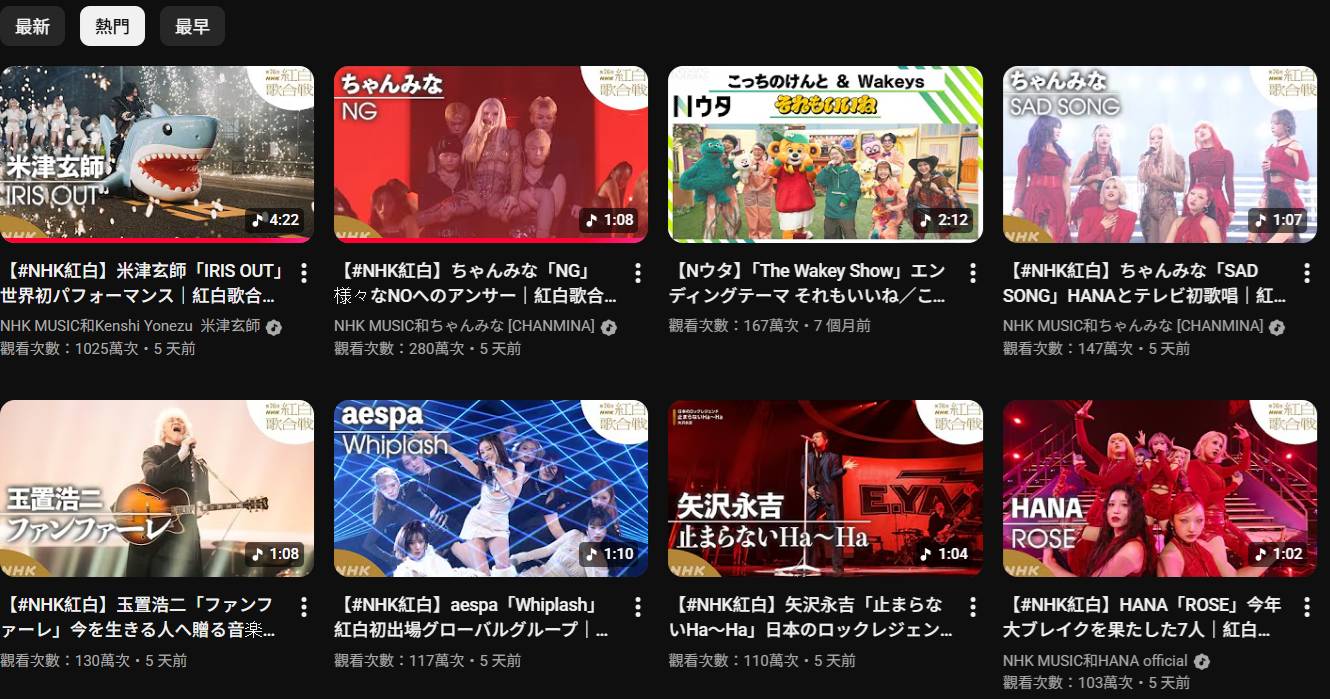 畢竟以往NHK把紅白影片上傳到水管都是HNK作為網路平台宣傳用途使用