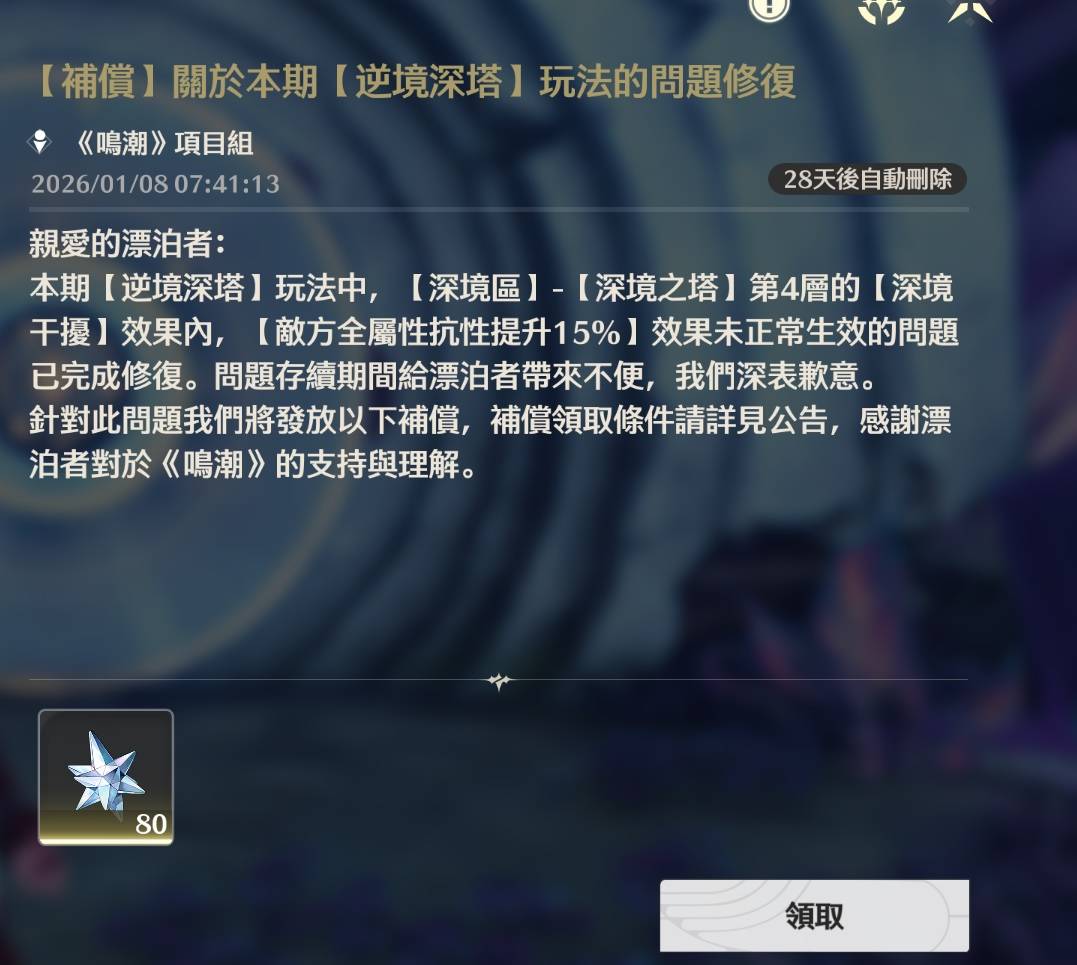 [鳴潮] 補償-本期逆境深塔BUG