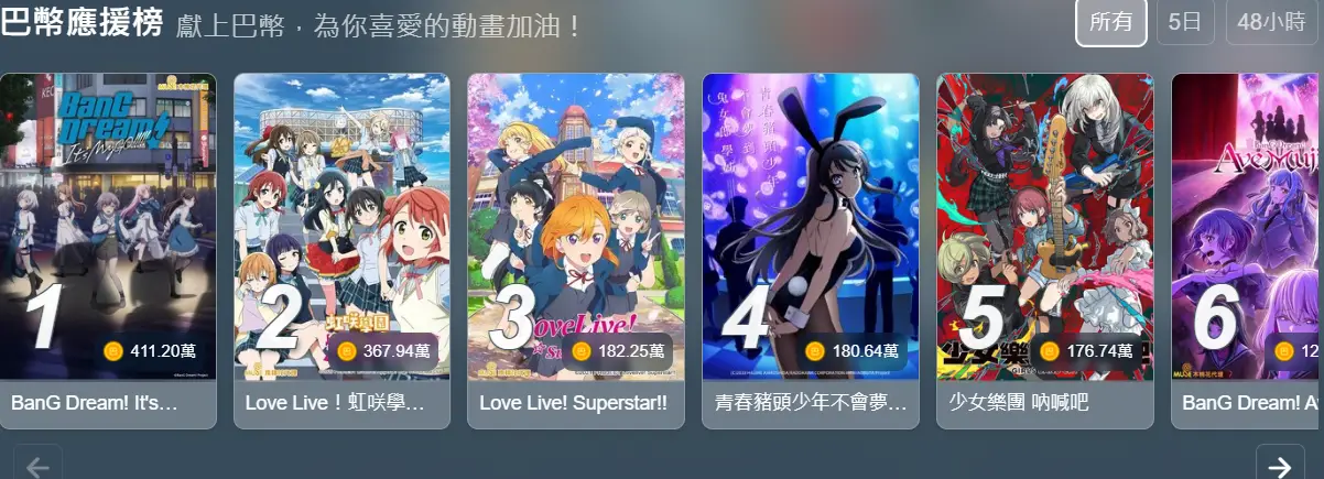 孤獨搖滾第8名 佐賀偶像18名 但LL系列在台灣 已經很久沒有上過劇場版了