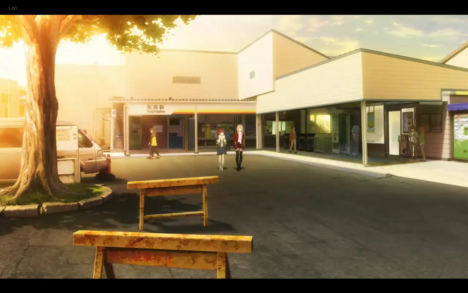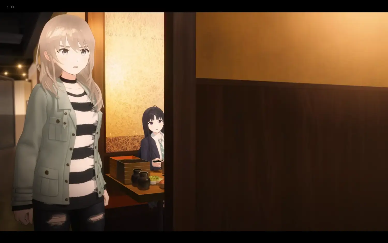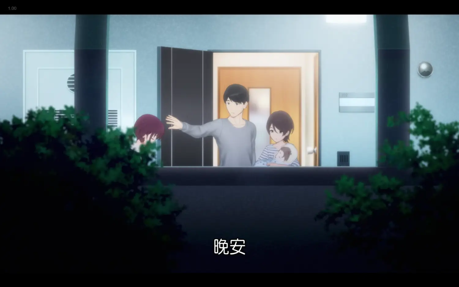 對應第一話的分鏡,這次鏡頭卻拉遠納入了兩根柱子,