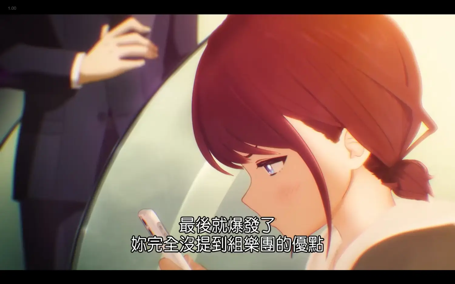 後面的隔板也在告訴觀眾,她的注意力一直在手機上,