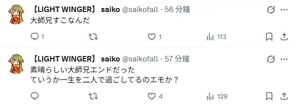 稍早之前日本玩家saiko似乎達成了相聲結局