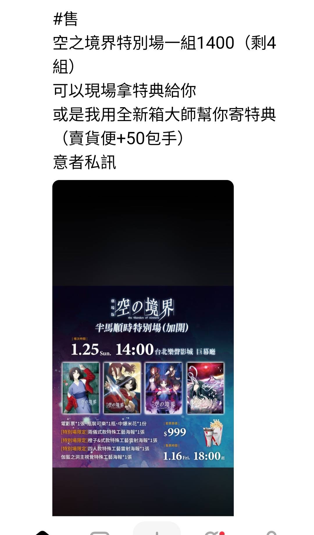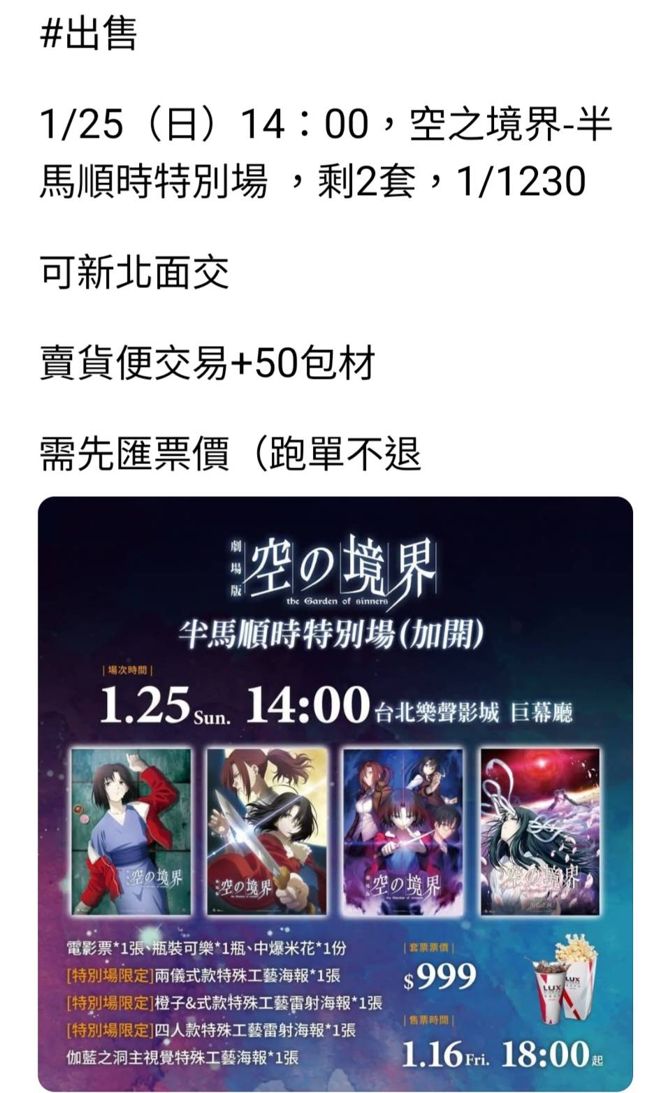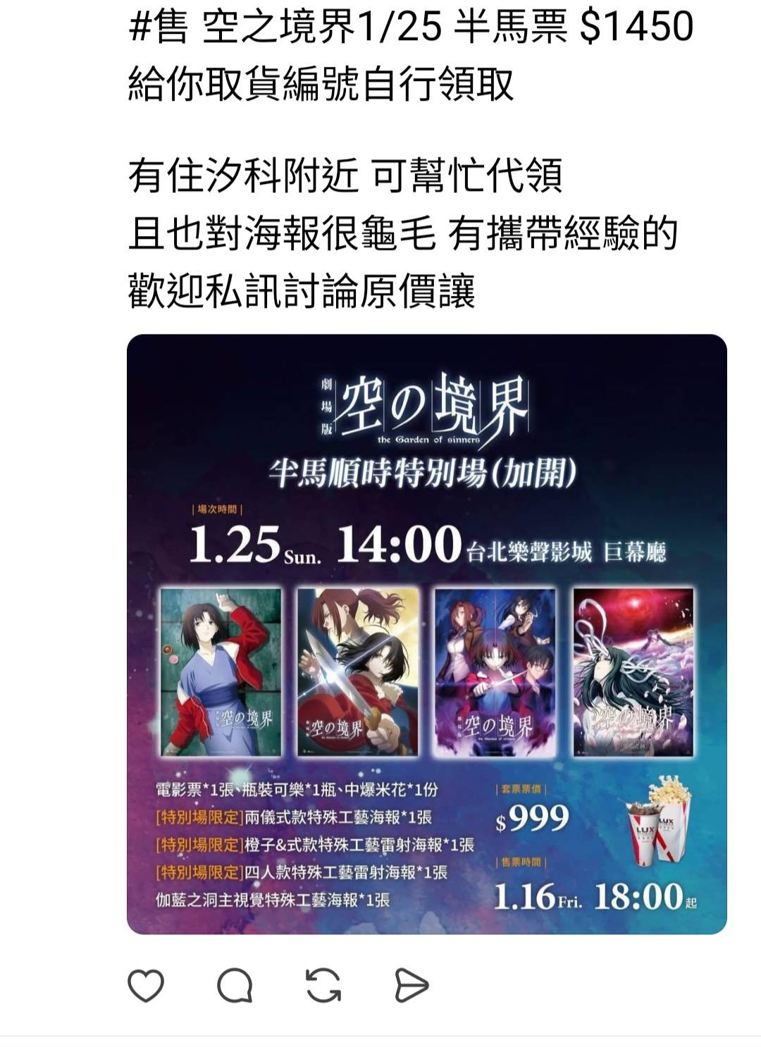 黃牛大人如此有大愛,替手慢的、沒時間的、忘記搶票的朋友保留了另一個能獲得限量海報
