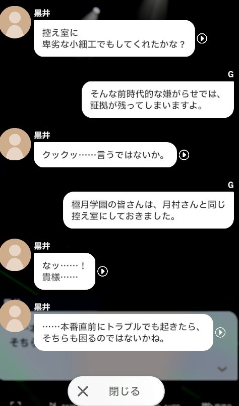 黑井:在休息室裡,該不會是你動了什麼卑劣的小手腳吧?