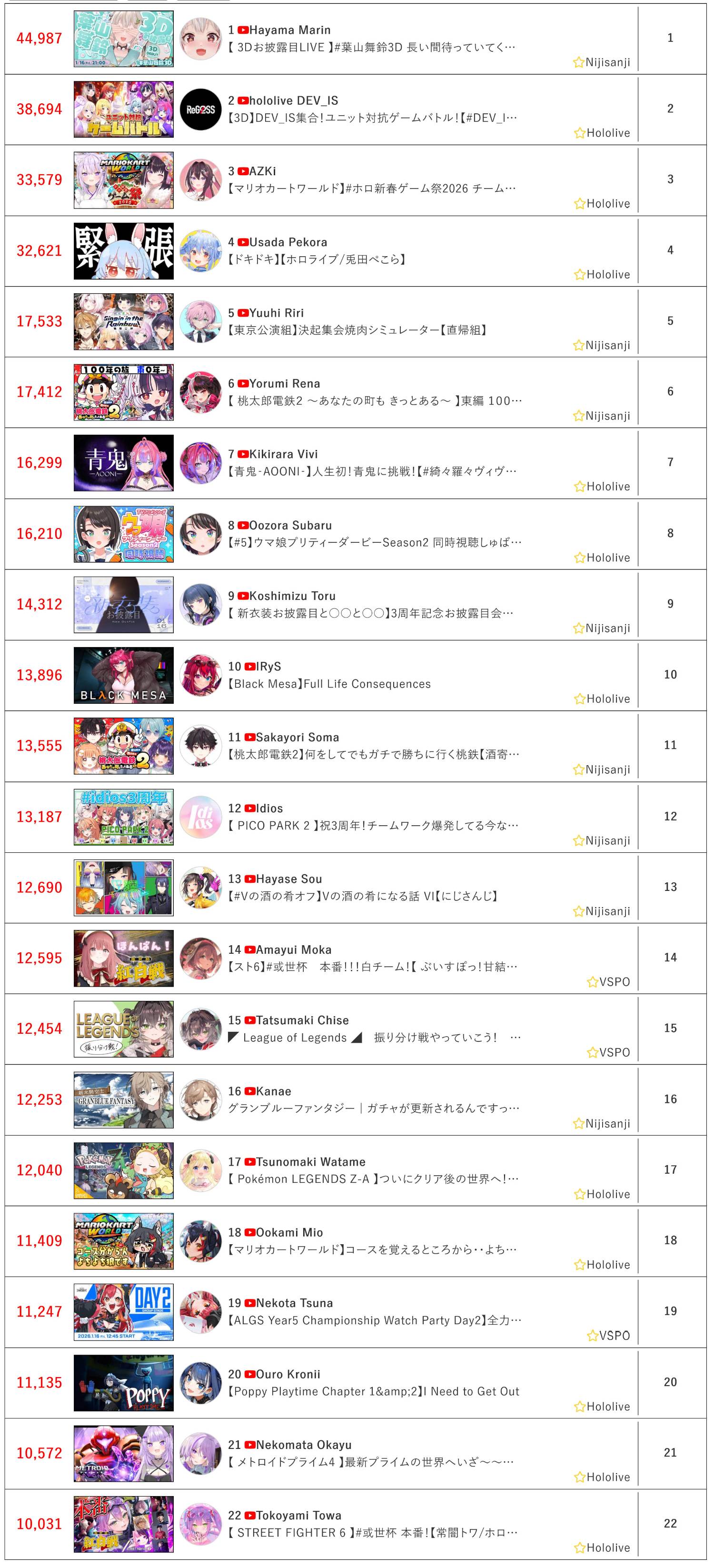 [Vtub] 1/16同接鬥蟲