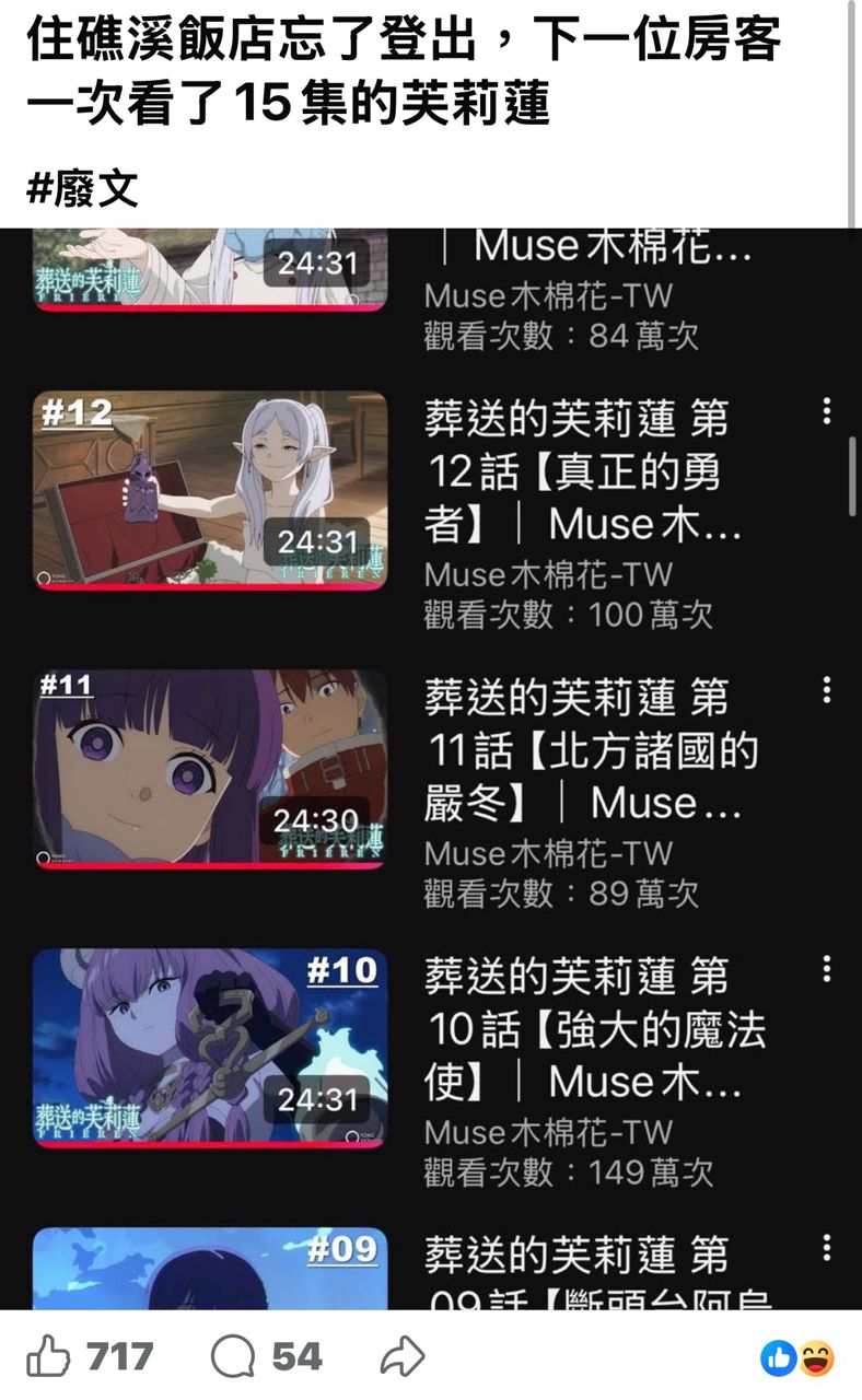 有個Po主退房的時候帳號忘了登出