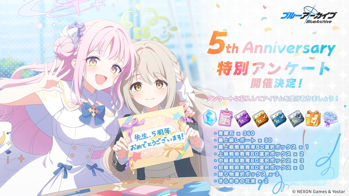 アップデート終了後、「ブルーアーカイブ 5th Anniversary 特別アンケート」を実施し