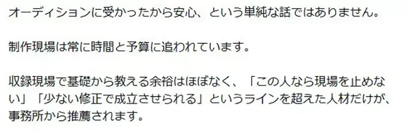 的演技,而是能夠穩定達標的演技。一位聲優能夠獲得經紀公司推薦,基本上就代表了他