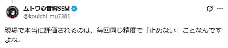 日本資深音響師,曾經參與多部電視節目、動畫、日劇製作的武藤康一最近在X發文,聊
