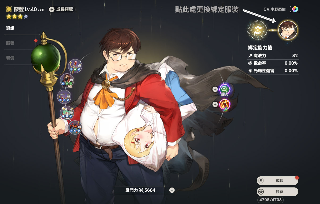 右邊可以看到綁定能力值,所謂綁定就是把這個角色(傑登)出場時的能力
