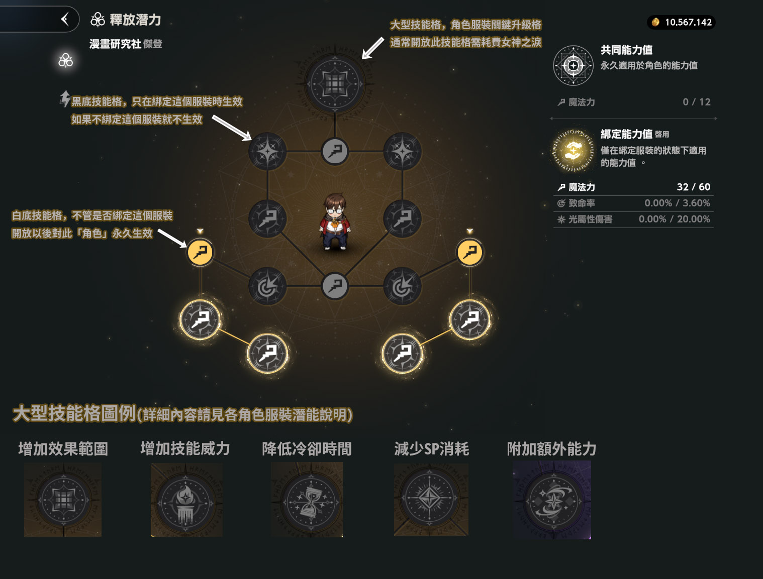 黑底格: 綁定能力。只在綁定這個服裝才有用。