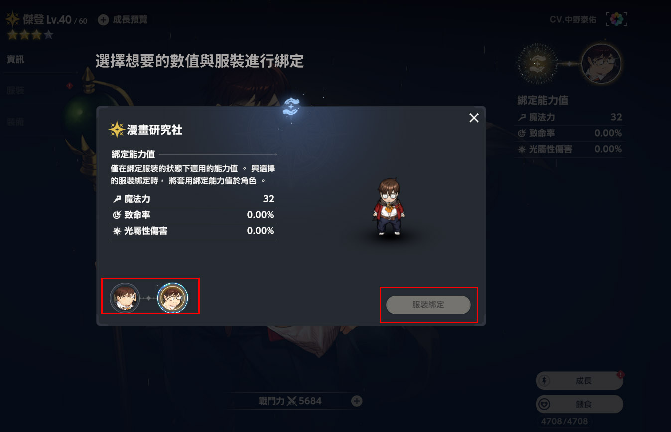 綁定在目前這個服裝所提供的能力上面。