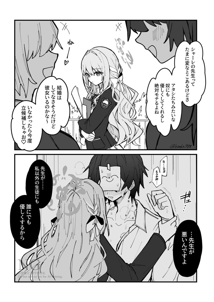 「夏萊的老師雖然有時候怪怪的 但對我們這種學生也這麼溫柔 他一定很受歡迎吧~」