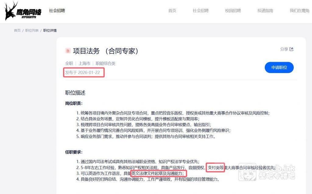 鷹角緊急開出新職缺 法律顧問 備註 合同專家