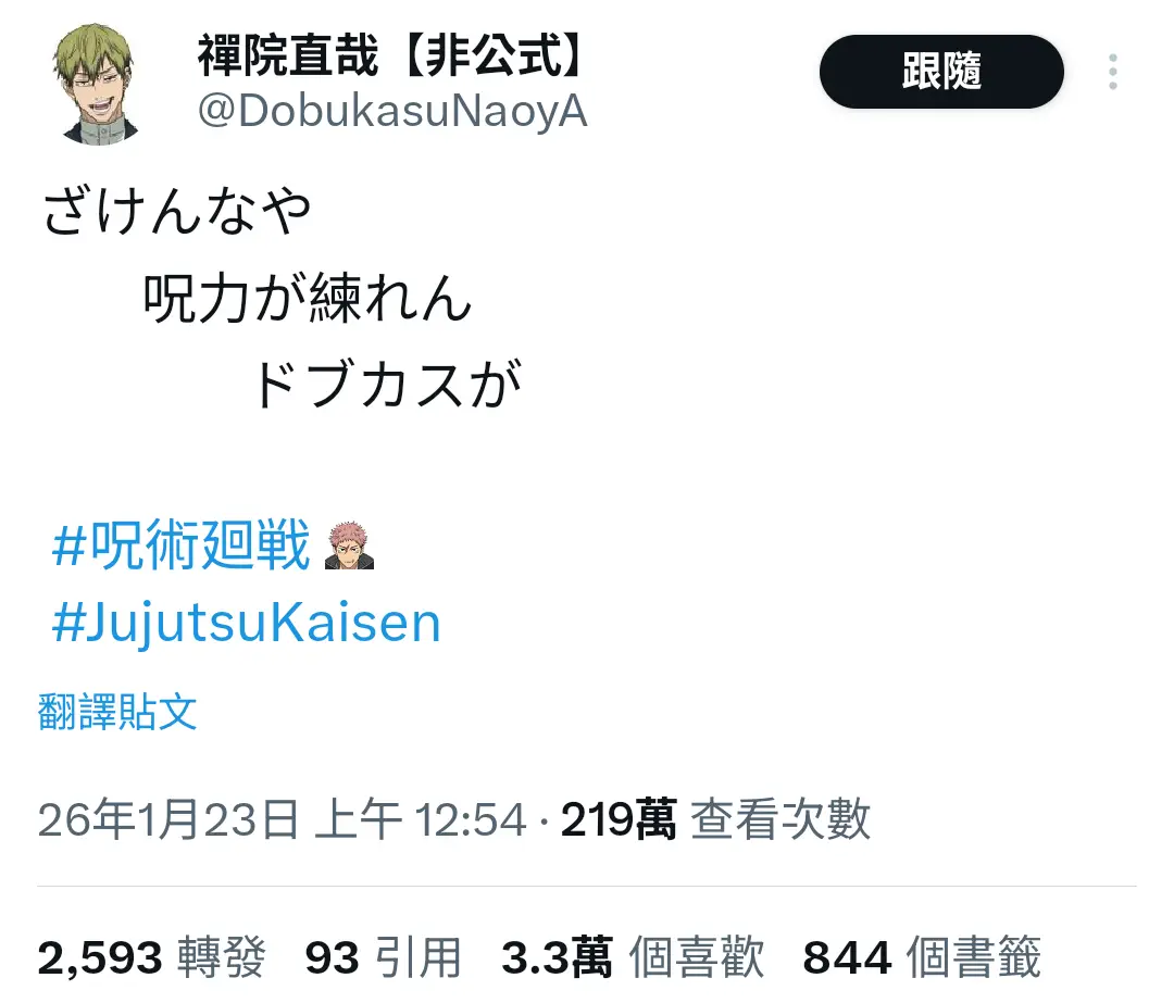 [咒術] 禪院直哉 辭世詩