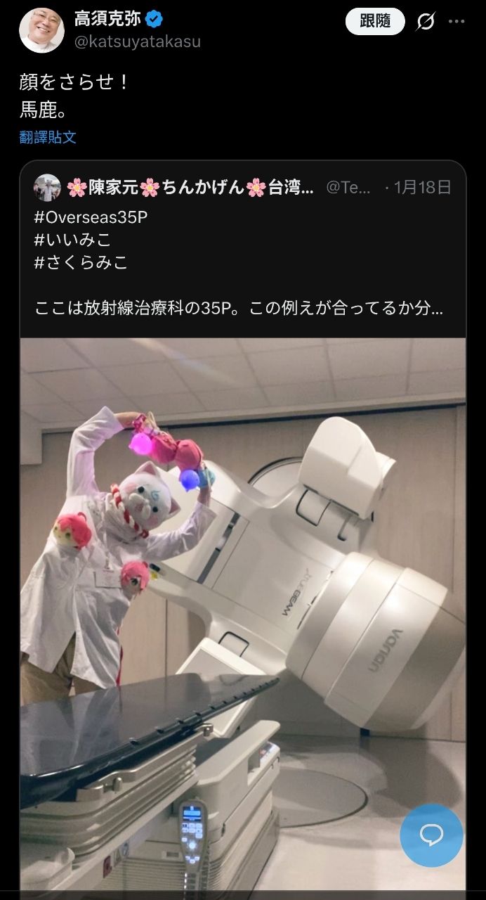 [Vtub] 35P放射師cos自拍 日網紅醫師痛罵