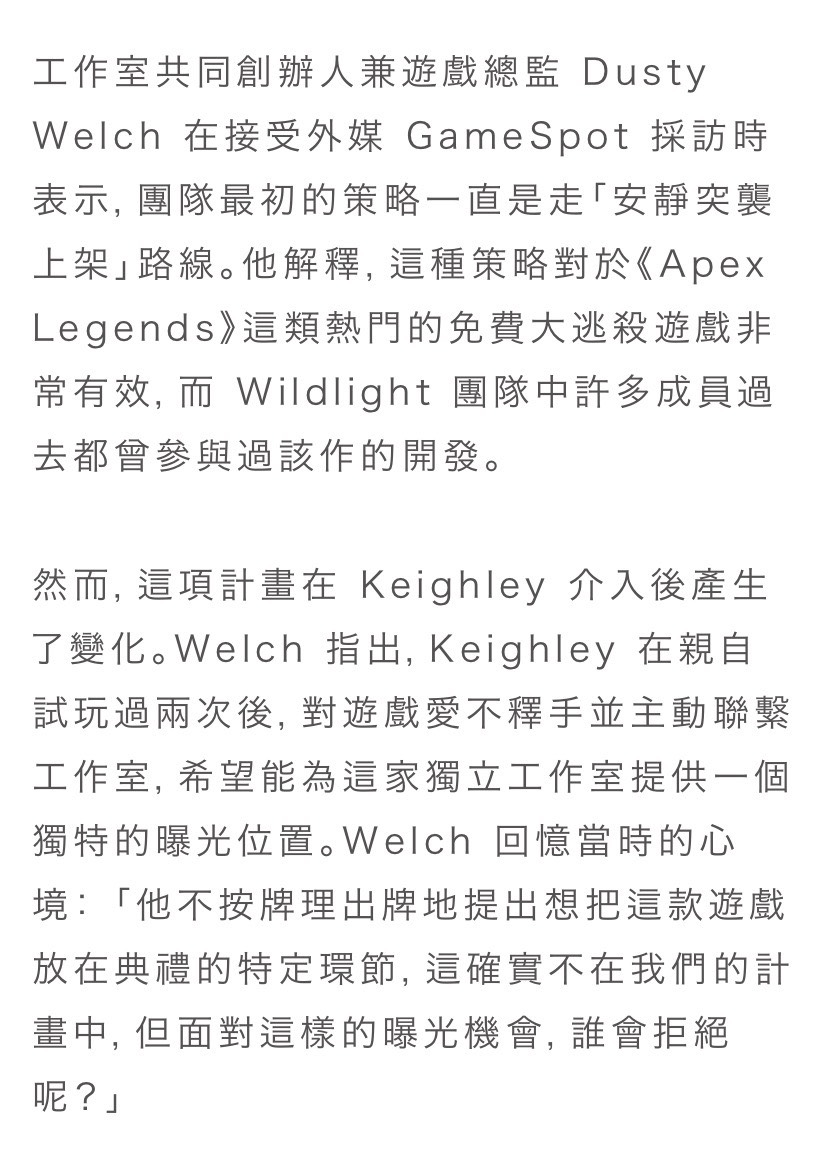 由前《Apex 英雄》與《泰坦降臨》資深開發者組建的 Wildlight Entertainment 所打造
