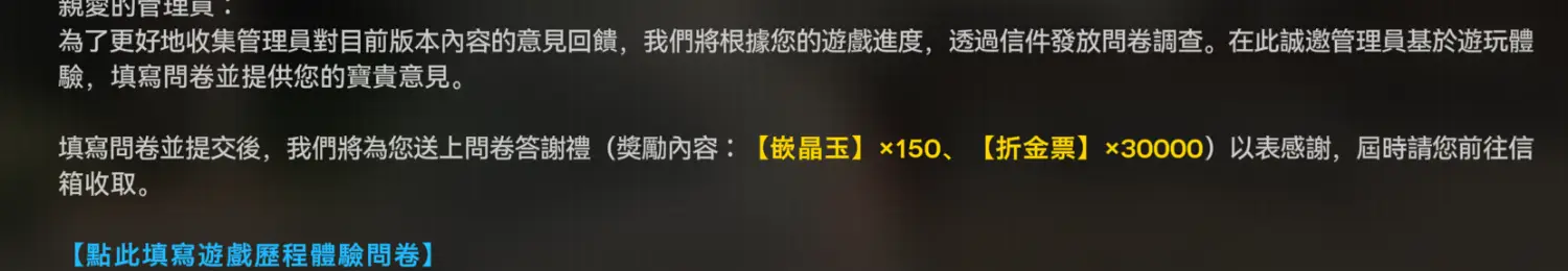 [閒聊] 終末地新問卷怎麼只剩150玉了