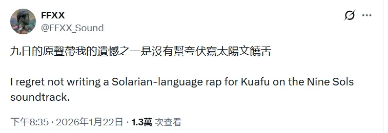 「九日的原聲帶我的遺憾之一是沒有幫夸伏寫太陽文饒舌」