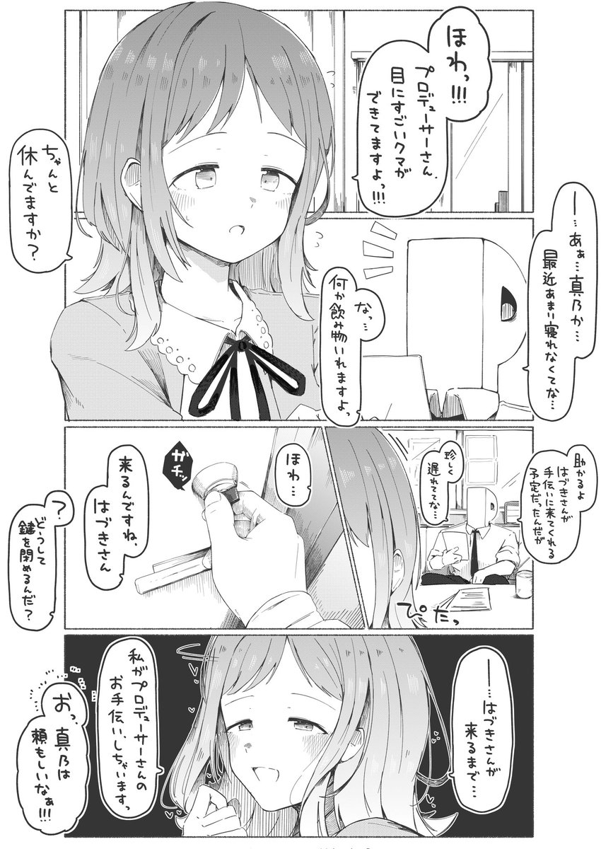 「呃...是真乃啊 很重嗎 最近其實沒怎麼休息呢」