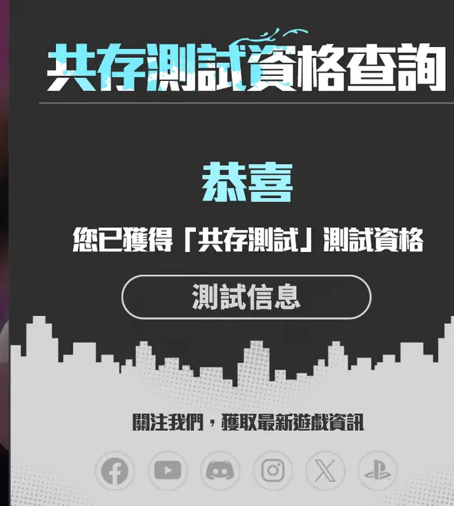 . 完成登入驗證後,即可查詢您的帳號是否獲得測試資格。