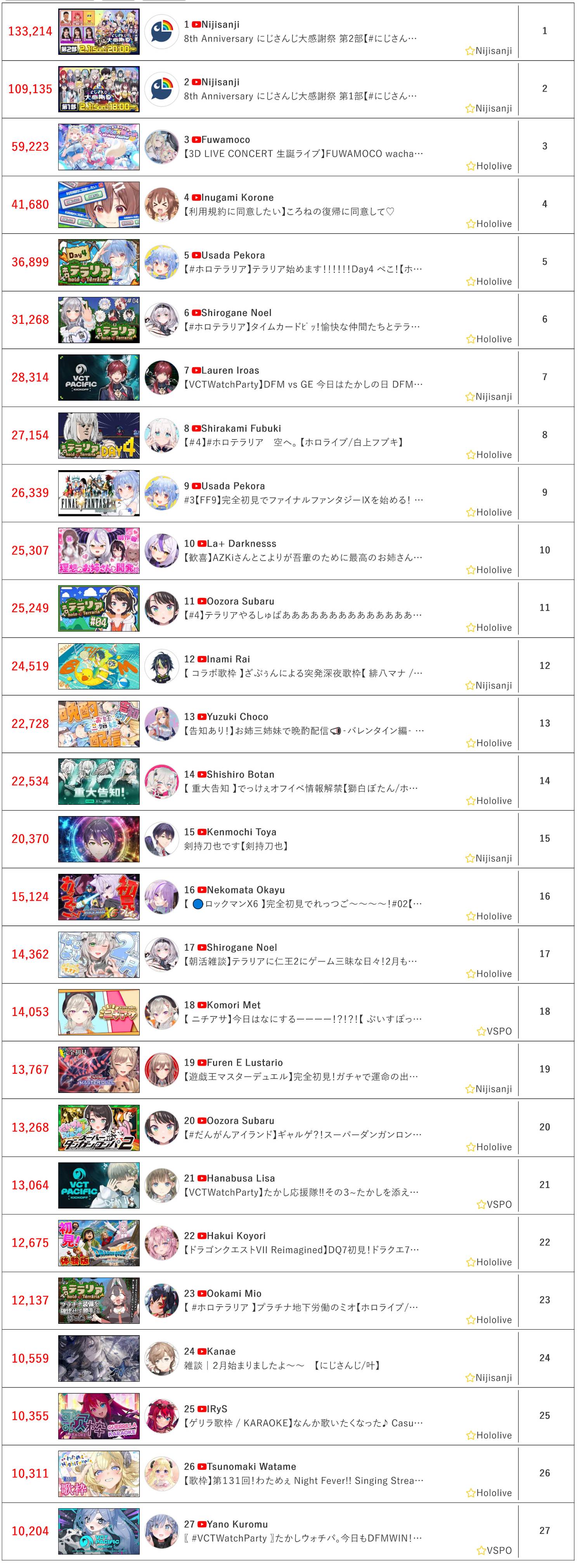 [Vtub] 2/1同接鬥蟲
