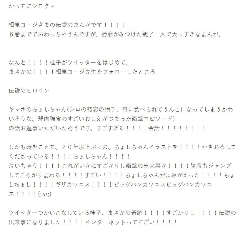 部落格有提到,因為中川翔子的家人又跑去推特跟作者討論這部漫畫,所以作者還特意又