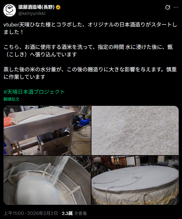 然後ひな的原創連動酒也開始進入釀造階段了