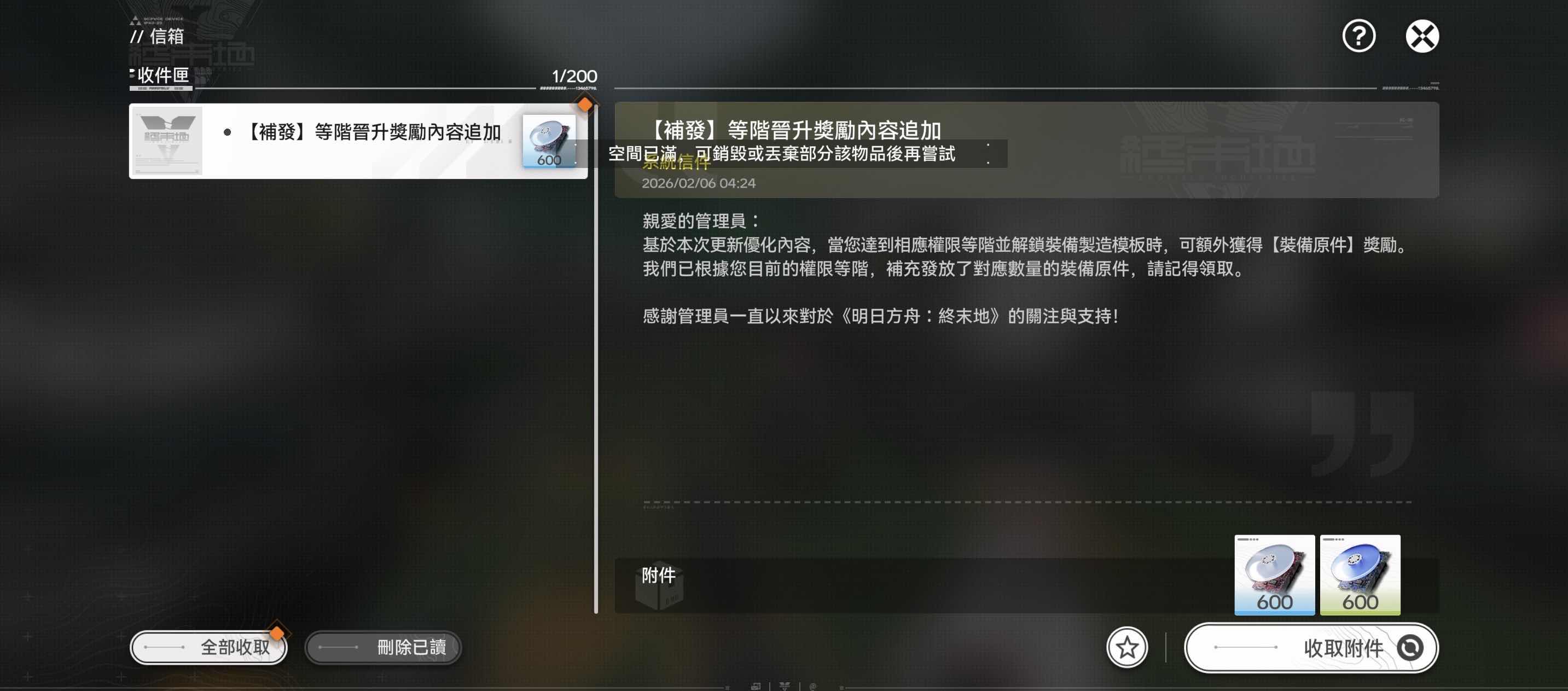[終末地] 我去,怎麼一上線信箱就被塞坨屎