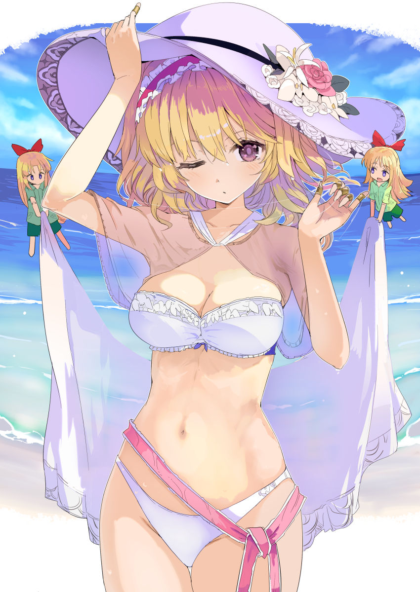 #東方 水着アリスと上海人形(暑中見舞い) - 宮鞍ハルト的插畫 - pixiv