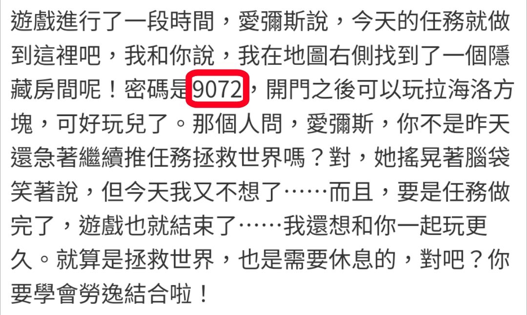 在跟小愛一起玩的遊戲裡隱藏房間的密碼...
