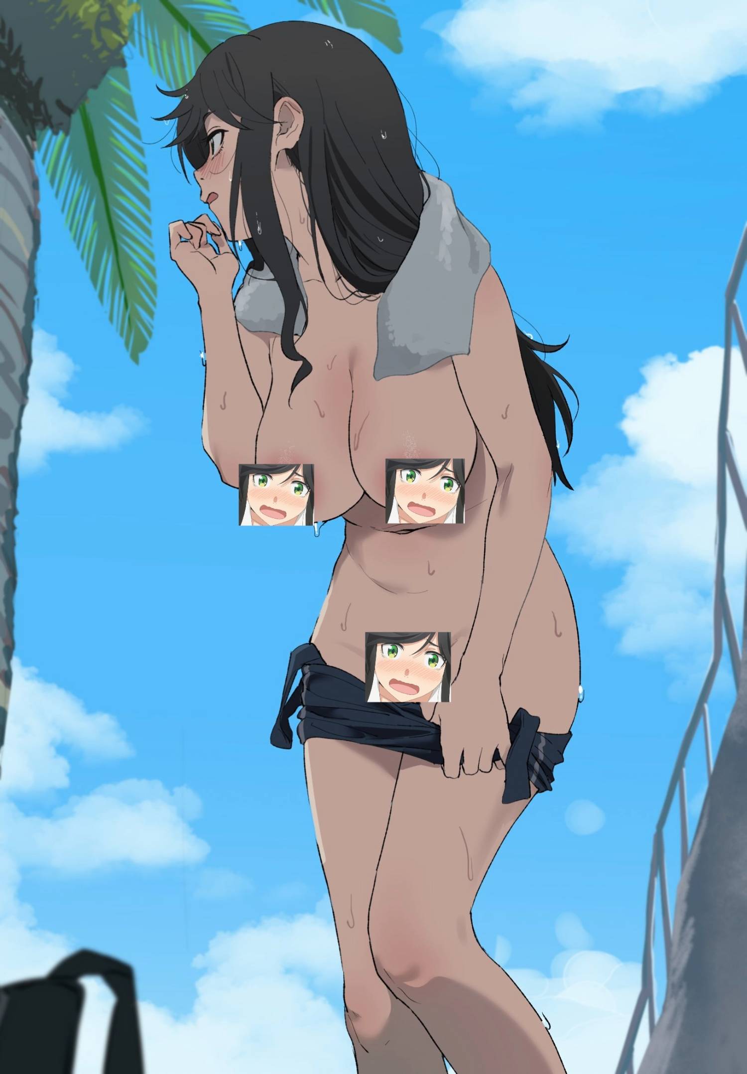 游完泳的她懶得找更衣室或廁所
