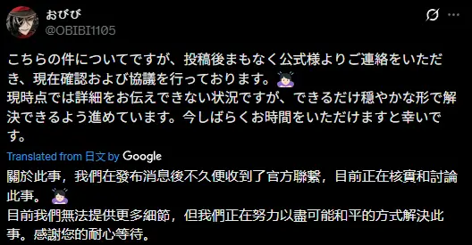 昨天2/11繪師本人有發文說正在處理