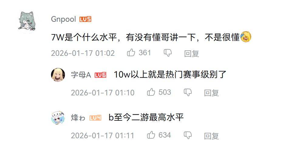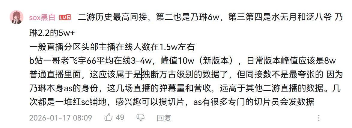 只以B站作比較,5萬差不多就是以往個人直播「二遊類別」的高峰,