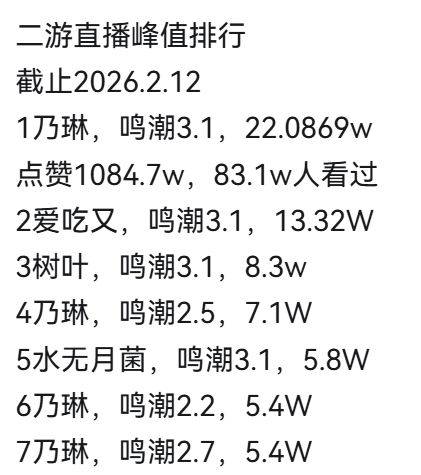 她之前播鳴潮2.5的7萬同接已經是破紀錄了。
