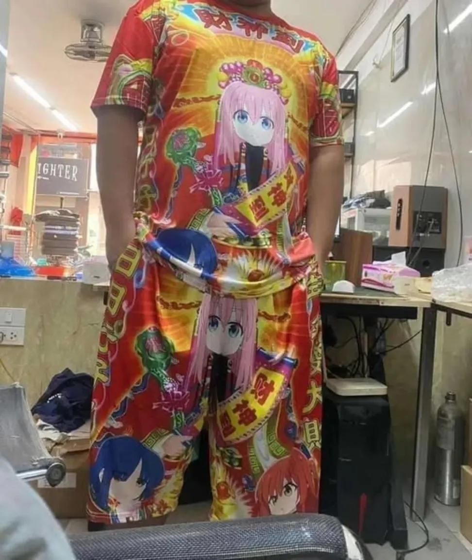 後藤一里財神短褲3D印花夏季潮流聚酯纖維短袖T恤套裝