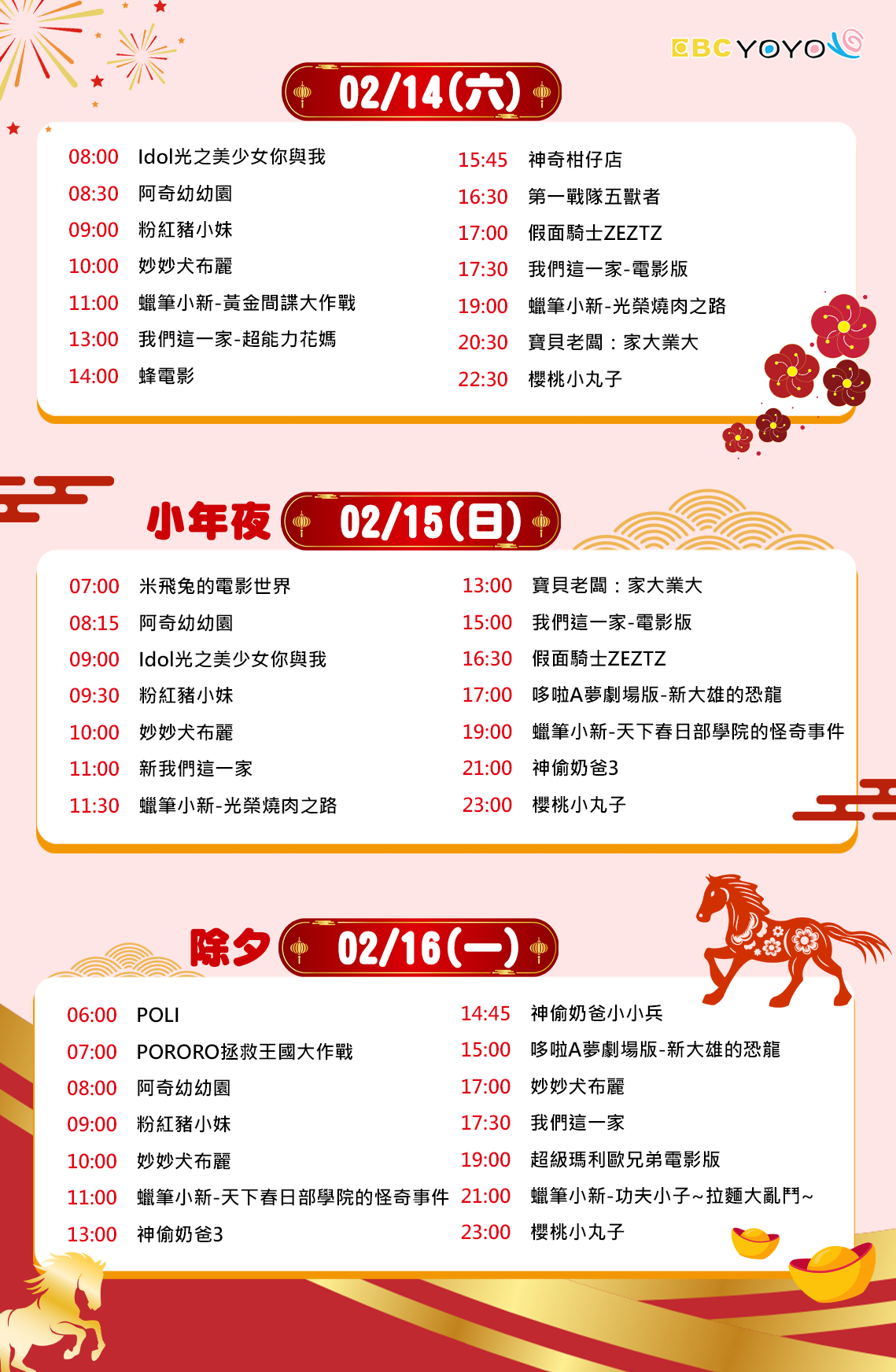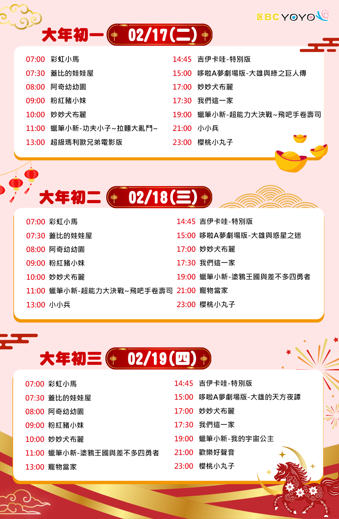 ▶除夕到初三 2/16-2/19 早上10點至11點