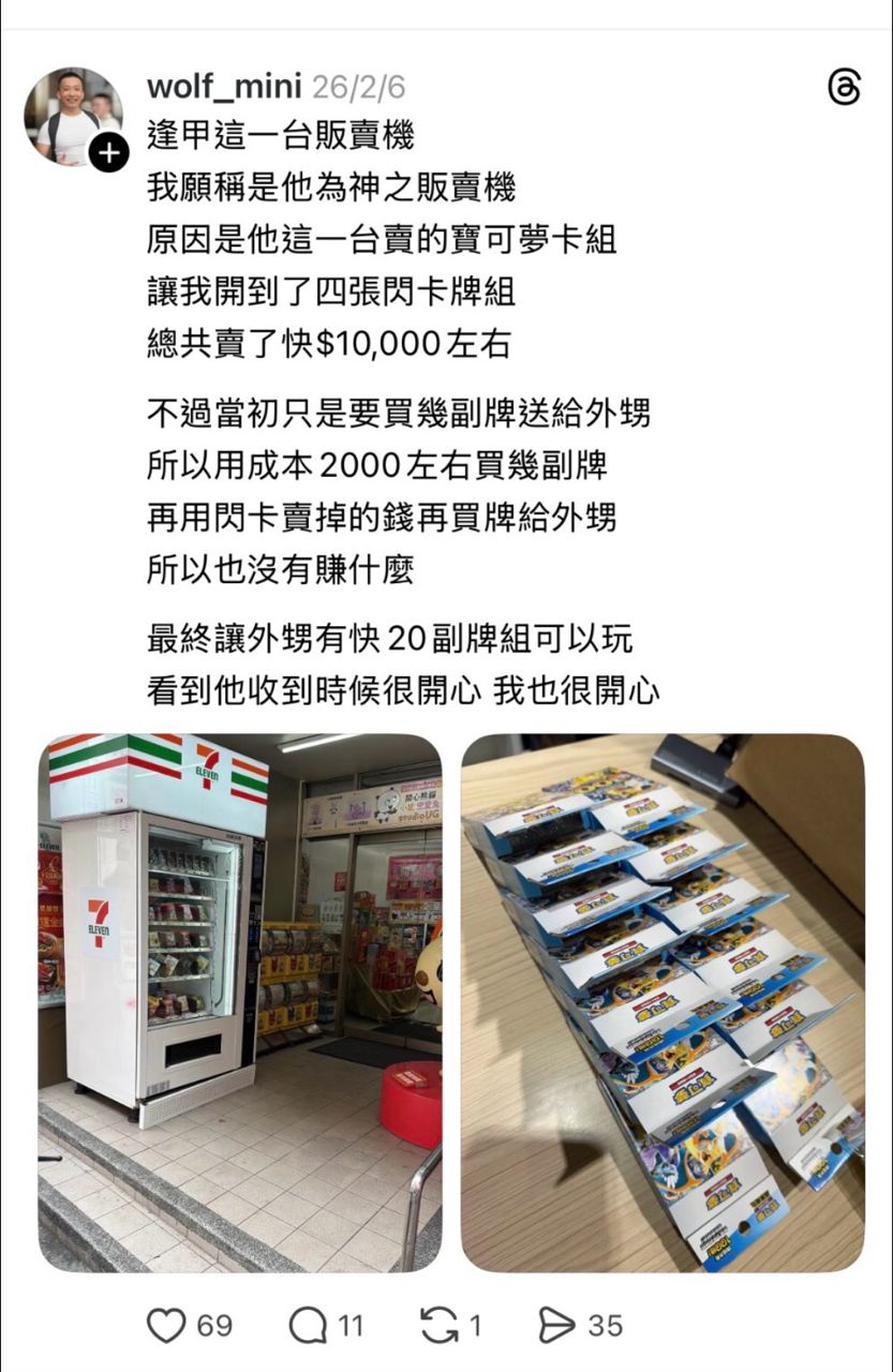 他真的就是這樣 買了一堆中了中獎 賺了一萬塊 貴的卡片都自己賣掉了