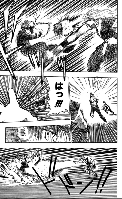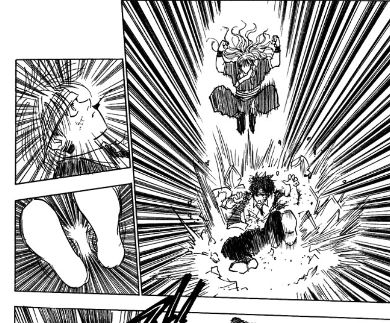 庫洛洛和二老打的時候,一開場,就迎面擋了席巴一記正拳