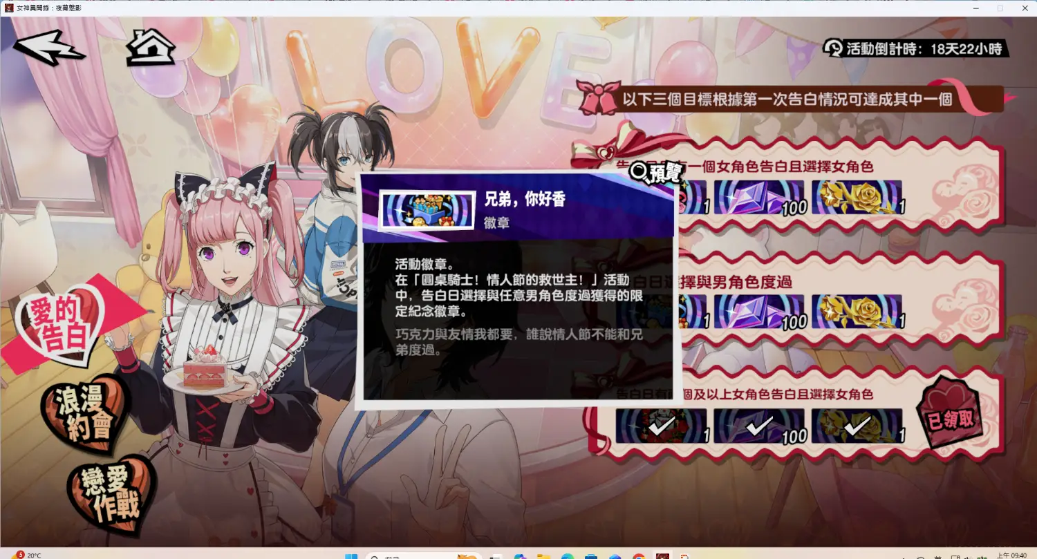 另外如果告白時選跟男的一起度過 會有如下成就
