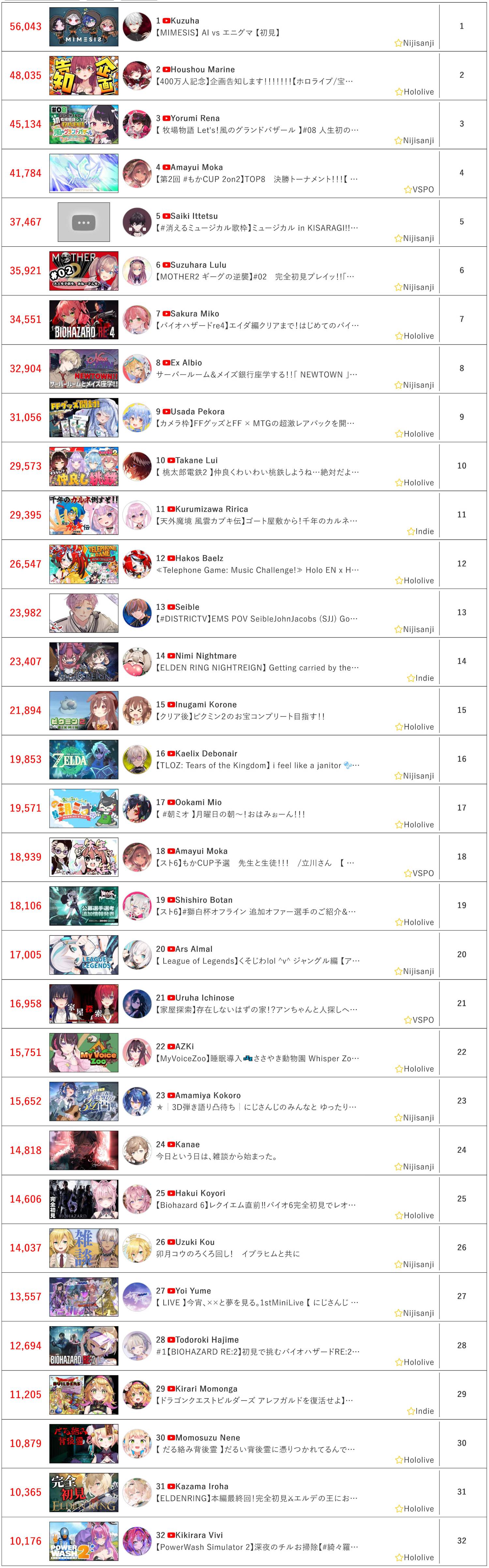 [Vtub] 2/23同接鬥蟲