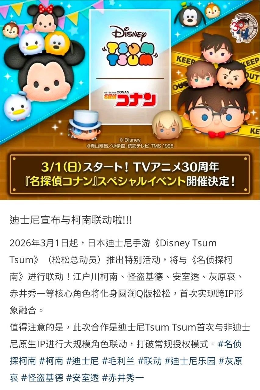 柯南這次三十週年活動接著要跟日本迪士尼聯動了,活動都是在日本,這樣香港跟上海迪