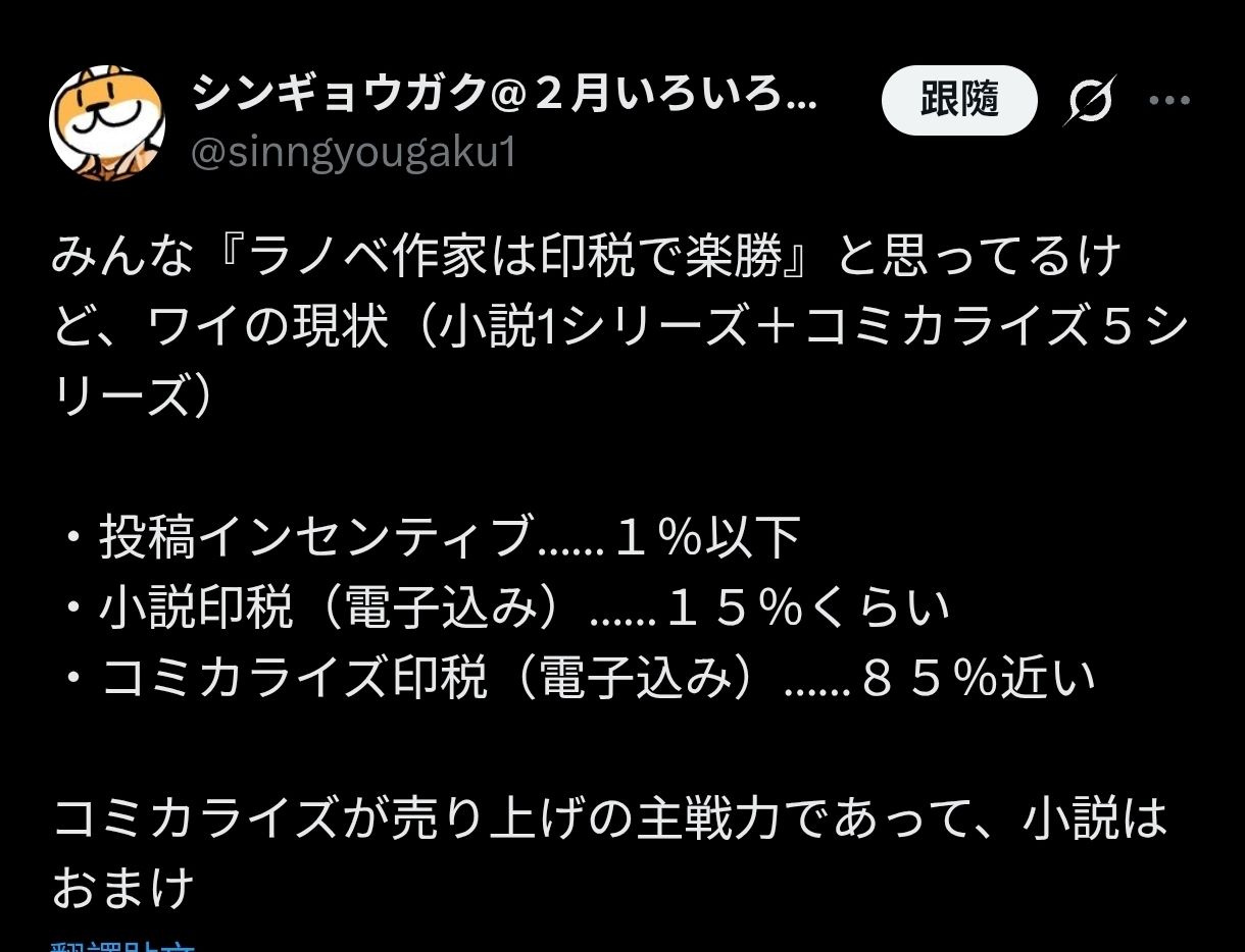[討論] 作者:改編漫畫比輕小說收入高很多