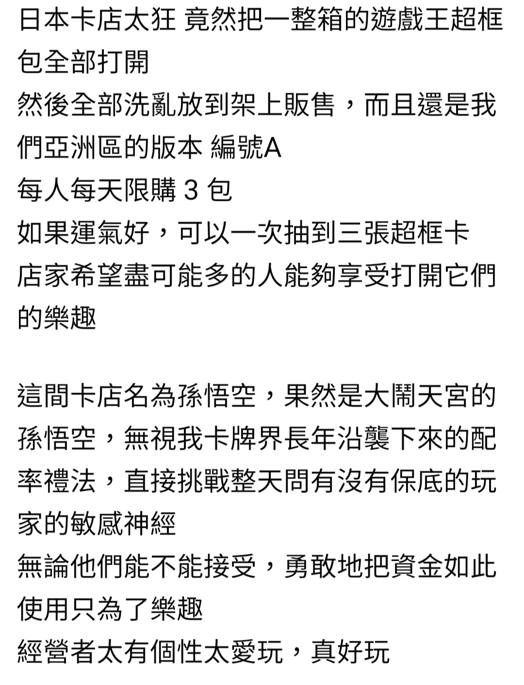 網上看到有日本店家直接把超框包拆盒,卡包散裝賣,被質疑是否已把大獎包濾走了。