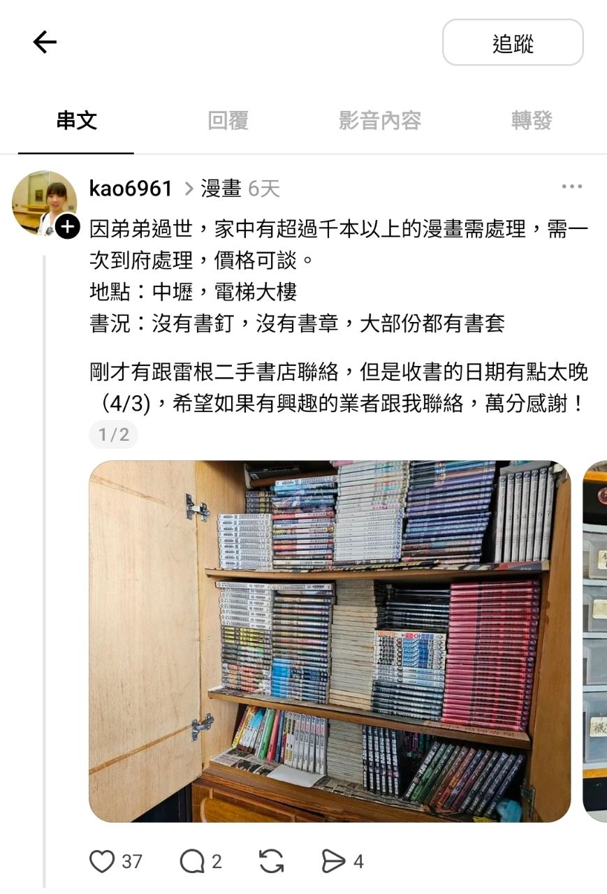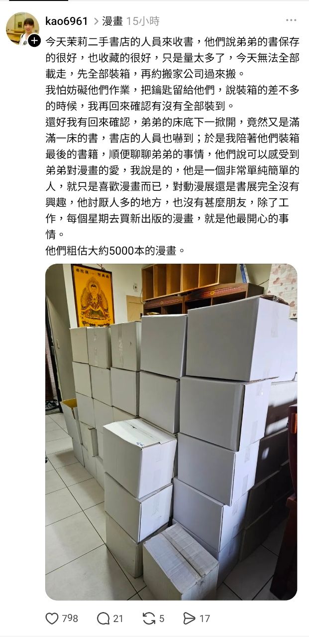 [閒聊] 擁有5千本實體漫畫書的書友離世