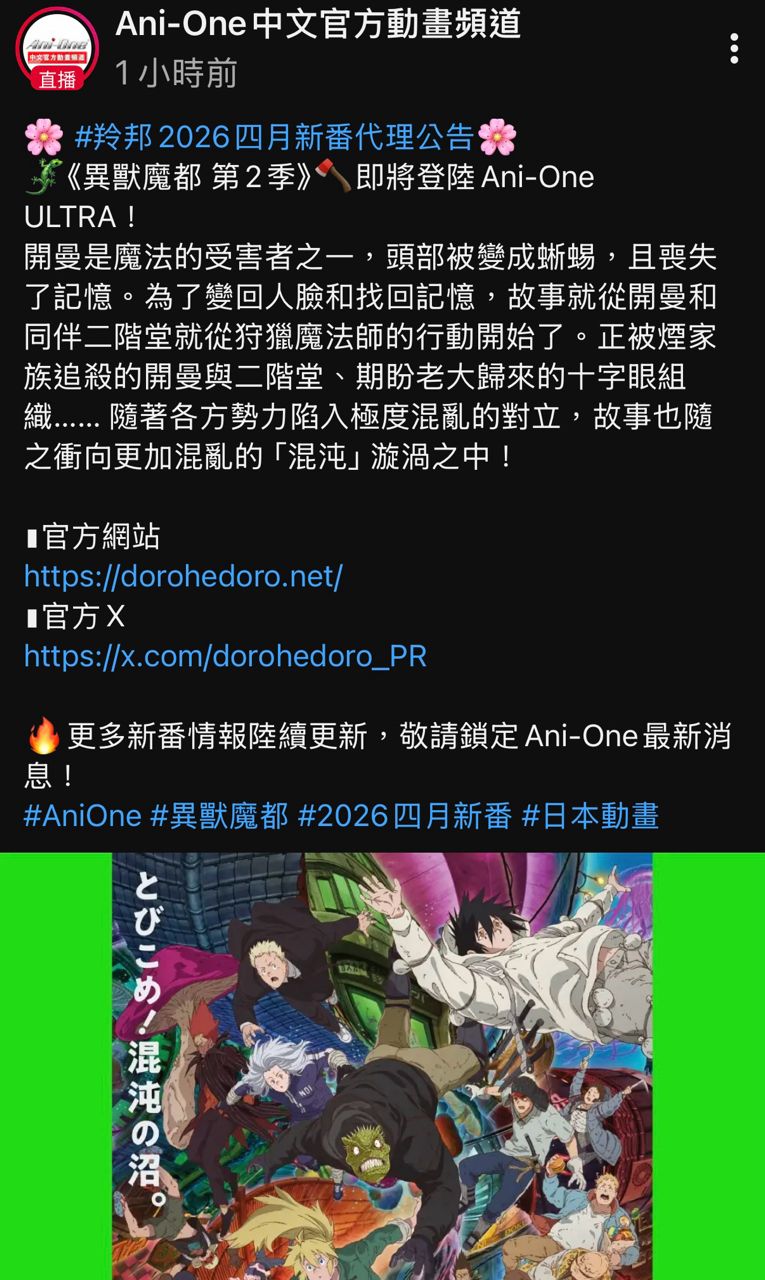 [情報] 羚邦四月新番代理:異獸魔都 第2季