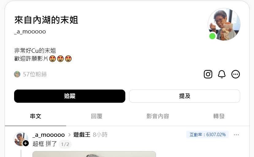 雖然帳號目前才57粉絲,感覺要爆紅了
