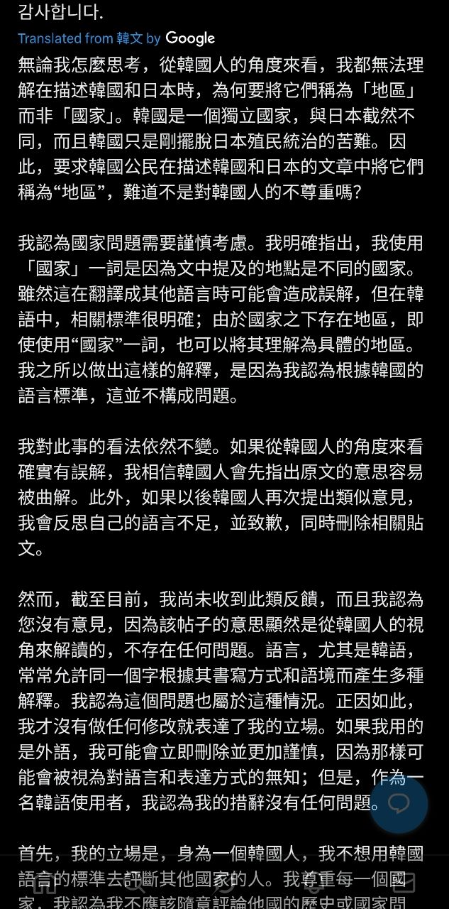地區”,難道不是對韓國人的不尊重嗎?」