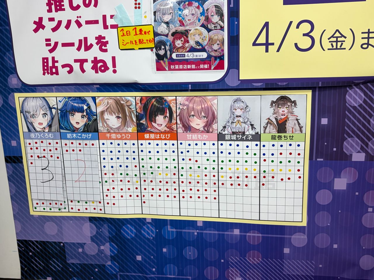 上面的頁數是只翻頁的意思,例如ひなの的4頁就代表他前三張已經全部投滿了,也是目