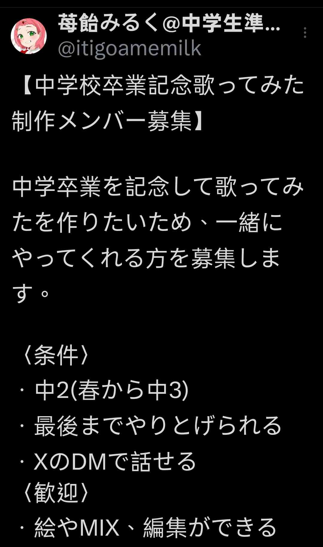 最近還有在徵求國二升國三的同齡人一起做畢業紀念歌翻唱
